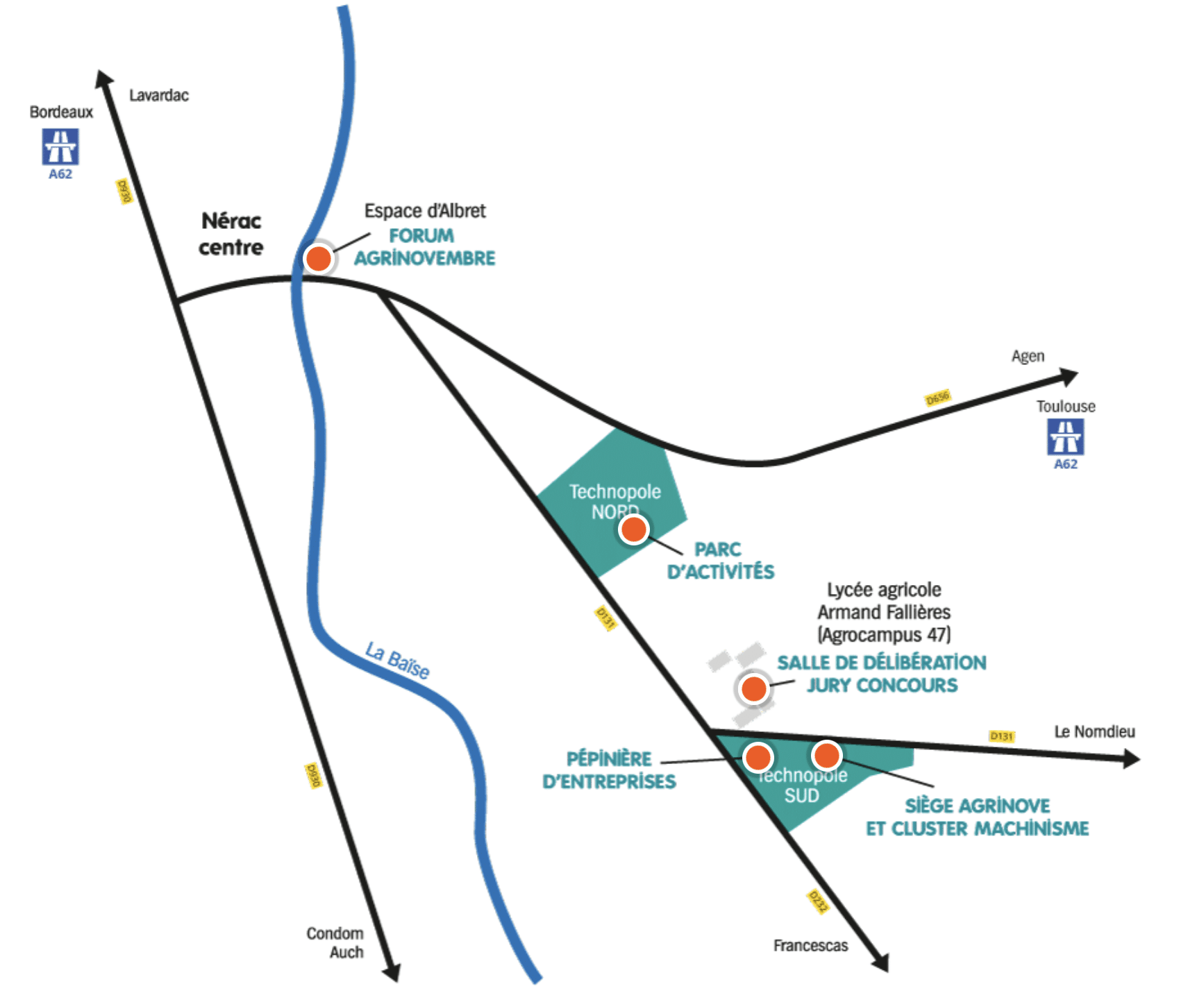 Basé à Nérac, au cœur du Lot-et-Garonne, Agrinove est un écosystème unique dédié à l’innovation dans le secteur de l’amont agricole avec une pépinière d’entreprises, un parc d’activités, un cluster spécialisé dans le machinisme agricole, un concours national pour les porteurs de projets innovants, et son forum « Agrinovembre », un rendez-vous incontournable réunissant les acteurs clés du secteur.